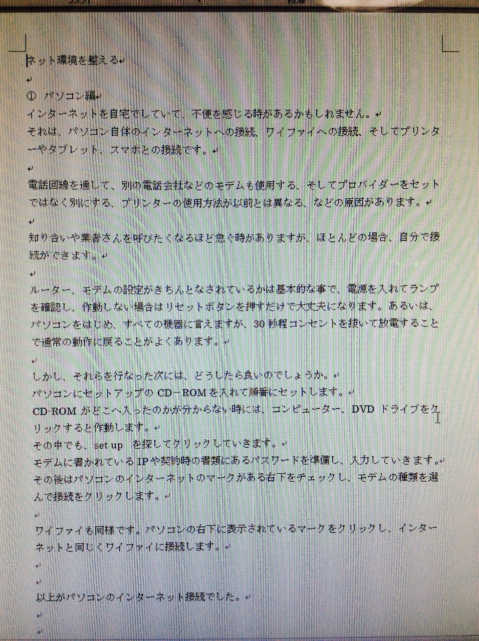 パソコン編インターネットを自宅でしていて、不便を感じる時があるかもしれません。それは、パソコン自体のインターネット接続、Wi-Fiへの接続、そしてプリンターやタブレット、スマホとの接続です。電話回線を通して、さらに別の電話会社のモデムも使用する、プロバイダーをセットではなく別にする、プリンターの使用方法が異なる、などの原因があります。ほとんどの場合、自分で解決できます。下記をご覧ください。見えずらいので、近いうちに直しますので、ご了承ください。